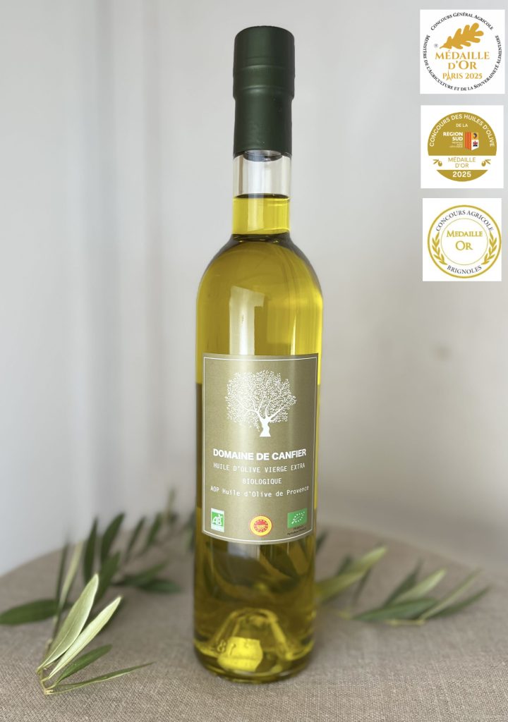 Notre huile bénéficie de l’Appellation d’Origine Protégée Huile d’Olive de Provence, gage de traçabilité, de savoir-faire et de respect du terroir.